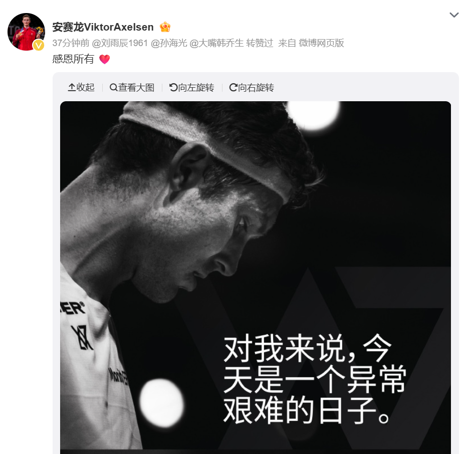 “对我而言,羽毛球从来都不只是一份职业,它就是我的生命。为了这项运动,我已竭尽所能,无愧于心。”